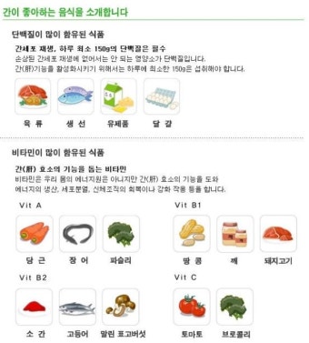 비타민 A, C, E가 풍부한 채소와 과일, 고단백 저지방 식품, 마늘, 브로콜리, 커큐민(강황), 우엉, 녹차 등은 간 기능 개선에 도움을 줍니다.