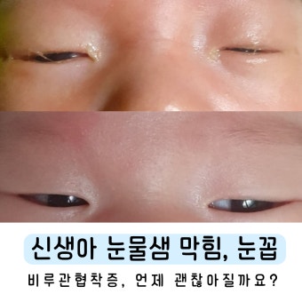 **아이의 경우**, 태어날 때 눈물길이 완전히 열리지 않은 상태일 수 있어요. 다행히 대부분은 성장하면서 자연스럽게 좋아집니다.