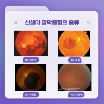 - 망막출혈: 망막은 시신경이 모여있는 중요한 부위입니다. 고혈압, 당뇨망막병증, 혈액 질환 등에 의해 출혈이 발생할 수 있으며, 시력 저하와 실명을 유발할 수 있어 정기적인 안과 검진이 필수입니다.