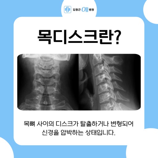 결론적으로 목 디스크는 단순한 근육통이 아닌, 척추 구조에 이상이 생겨 신경이 손상되는 질환이기 때문에 조기 발견과 적절한 치료가 필수입니다.