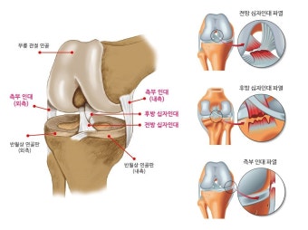 - 내측측부인대(MCL): 외부 충격에 의해 손상되기 쉬움.