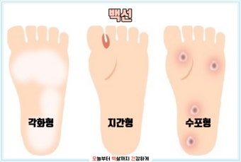 - 수포형 무좀은 물집이 터지며 진물이 나오는 형태로, 통증과 가려움이 매우 심한 것이 특징입니다. 갑자기 증상이 시작되며, 손으로 긁을 경우 다른 부위로 옮기기 쉽습니다.