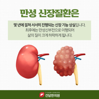 신장이 제 기능을 하지 못하면 노폐물이 혈액 속에 쌓이게 되고, 전해질 불균형이나 혈압 조절 실패로 다양한 합병증이 생긴다. 초기에는 별다른 자각 증상이 없지만, 점점 피로감, 부종, 식욕 저하 등이 나타난다. 심한 경우에는 생명을 위협하는 상태인 신부전으로 진행할 수도 있다. 그래서 신장이 침묵의 장기라 불리는 것이다.