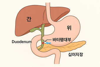 바터팽대부암은 소화기관에서 매우 중요한 접합부인 "바터팽대부(Ampulla of Vater)"에 발생하는 암입니다. 바터팽대부는 담즙과 췌장액이 십이지장으로 분비되는 관문으로, 췌장관과 총담관이 만나는 지점에 위치합니다. 이 부위에 종양이 생기면 담즙과 췌장액의 흐름을 방해해 다양한 소화 문제를 유발하고, 진행 시 다른 장기까지 침범할 수 있습니다.