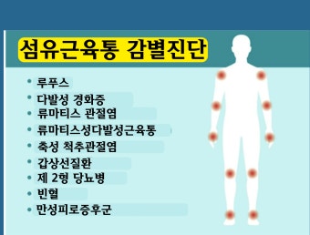 이러한 증상들이 복합적으로 나타난다면, 단순한 피로나 스트레스 때문으로 넘기지 말고 류마티스내과 또는 통증 클리닉 등 전문의를 찾아 상담을 받아보는 것이 중요합니다.