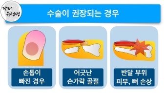 - 손톱 아래 피가 너무 많이 차서 손톱이 들뜨거나 떨어질 것 같을 때