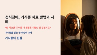 섭식 장애는 단순한 다이어트 실패가 아닌, 심리적 고통이 드러나는 정신 질환입니다. 체중, 음식, 체형에 대한 집착은 시간이 지나면 사라지지 않고, 점점 더 깊은 상처를 남깁니다. 그러나 조기에 발견하고, 적절한 치료와 사랑이 함께한다면 충분히 회복할 수 있는 질환입니다.
