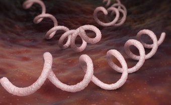 트레포네마 팔리덤은 나선형 형태의 박테리아로, 현미경이 아니면 육안으로는 볼 수 없습니다.