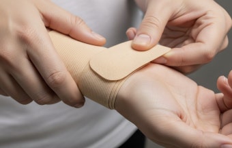손바닥 쪽에서 시작해 위로 감아줍니다. 움직임을 방해하지 않도록 적당히 조절하세요.