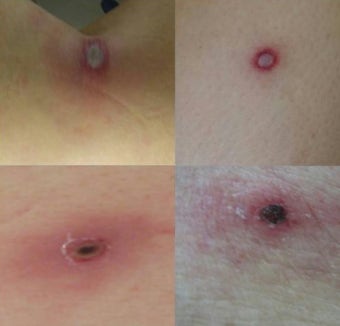 피부 발진 및 검은 딱지(가피)