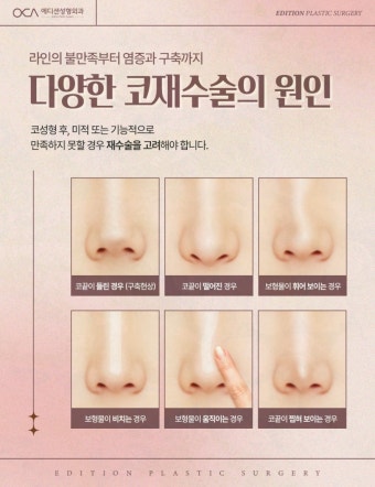 코 구축 외에도, 코 성형 후에는 다음과 같은 부작용이 생길 수 있습니다: