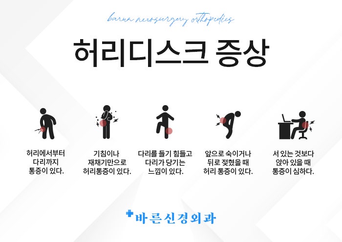이러한 가벼운 통증을 무시하고 방치할 경우, 시간이 지나면서 점점 증상이 악화됩니다. 초기 신호로는 아침에 일어날 때 허리가 굳어있는 느낌, 오래 앉아 있을 때 허리가 쑤시고 아픈 증상, 한쪽 다리가 저리고 당기는 현상 등이 나타날 수 있습니다. 간혹 다리 감각이 둔해지거나, 발끝이 시린 느낌도 허리 디스크의 초기 징후일 수 있습니다.