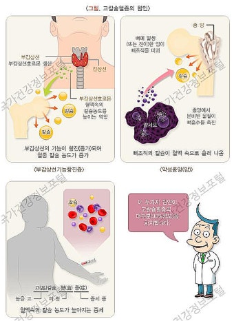 아닙니다. 음식이나 보충제의 과잉 섭취로 생기기도 하지만, 가장 흔한 원인은 부갑상선 기능 항진증과 암입니다. 따라서 단순히 섭취 제한만으로는 해결되지 않고, 반드시 원인을 정확히 진단해야 합니다.