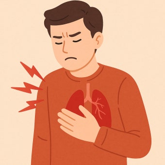 폐를 둘러싼 흉막에 염증이 생기는 질환입니다. 흉막은 폐와 흉곽 사이에 있는 얇은 막으로, 염증이 생기면 흉통이 발생하고 숨쉴 때 통증이 더 심해집니다. 기침이나 재채기 시 찌르는 듯한 느낌이 특징입니다.