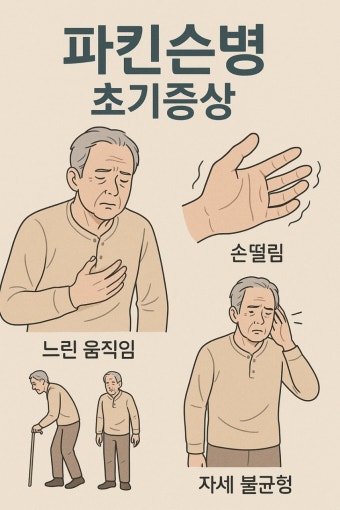 한쪽 손의 미세한 떨림, 후각 저하, 운동 둔화, 글씨체 변화, 수면 이상 등이 초기 증상일 수 있으며, 조기 진단이 매우 중요합니다.