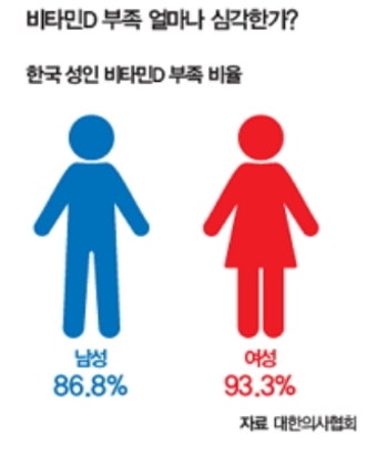 한국인의 경우 전통 식단이 비타민 D 함량이 낮은 편이어서 결핍 위험이 더욱 커지죠.