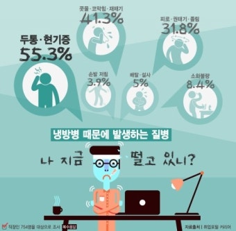 냉방병은 감염이 아니라 냉방 환경에 장시간 노출되면서 체온이 낮아지고 자율신경이 흐트러져 발생하는 증상입니다. 일반적으로 몸살, 근육통, 소화 불량, 피로감 등이 나타나며, 특별한 바이러스가 원인이 아닙니다.