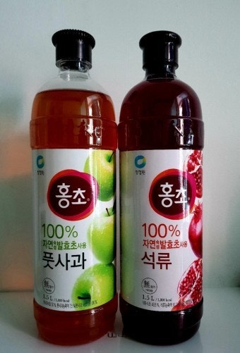 A. 기본은 식초지만, 홍초는 음료로 마시기 좋게 발효·가공된 제품입니다.